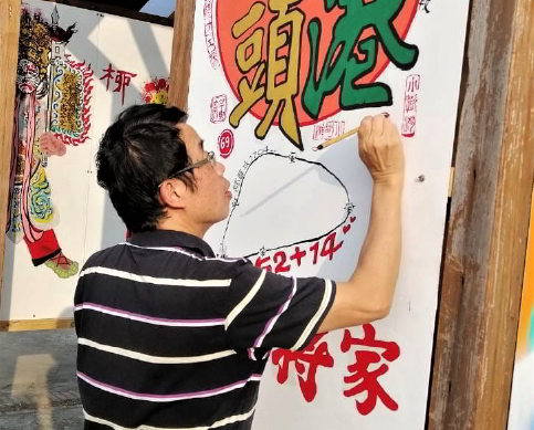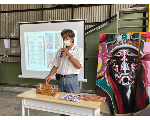 | 作品簡介 | 104 年後驛社區綠美化打造點「燒烙亭」門神彩繪 105 年後驛社區草皮關公彩繪、燒烙亭牆面(八家將)藝術換季 106 年後驛社區綠美化打造點「將才工場」協力夥伴、大門火車頭彩繪 110 年後驛社區燒烙亭牆面(八家將)藝術換季 |